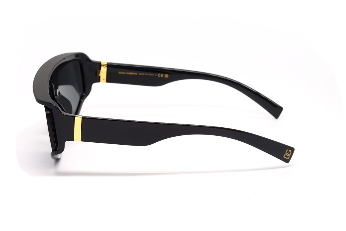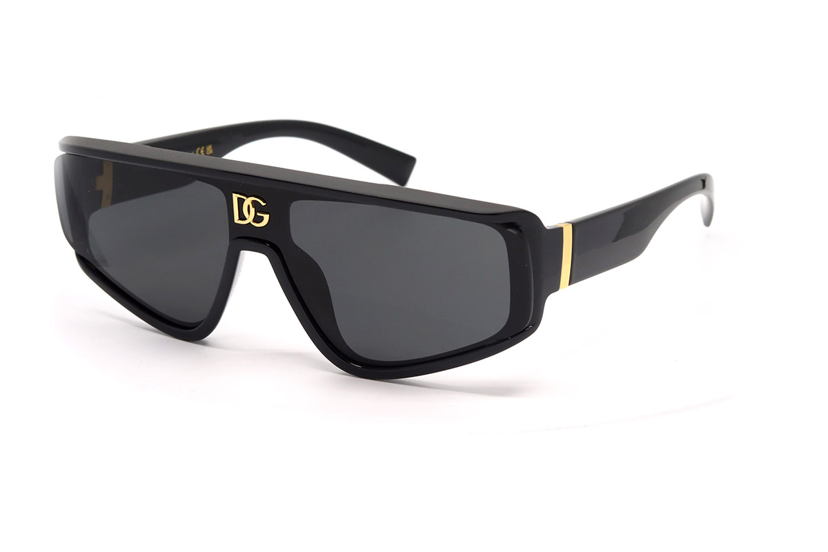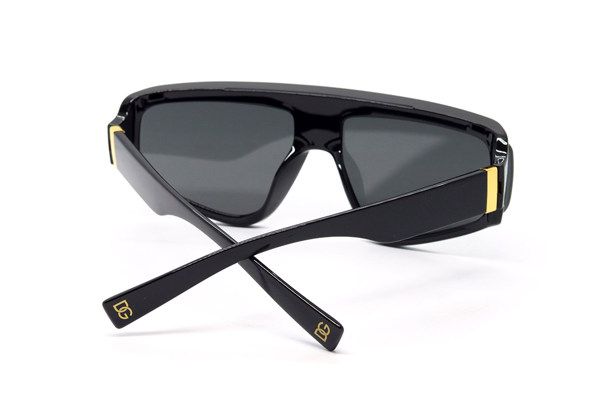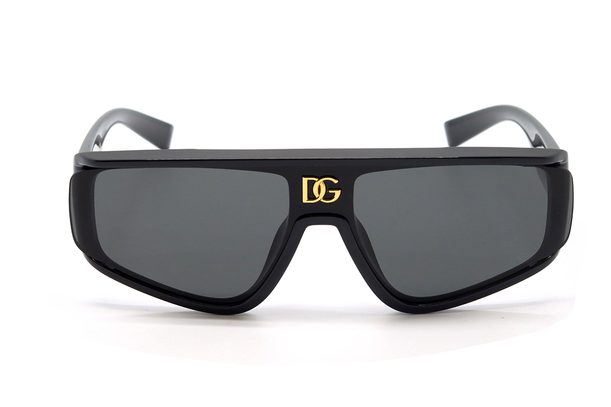 Оправа этих солнцезащитных очков изготовлена из прочного гипоаллергенного пластика. Форма оправы нестандартная: близка к прямоугольной, но углы несколько закруглены. На рамке оправы (над переносицей) есть фирменное лого — буквы DG золотистого цвета. Сверху рамки есть небольшой козырек для дополнительной защиты от солнечных лучей.- Материал оправы: пластик